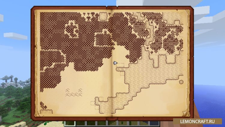Мод Antique Atlas добавит в игру карту, которая будет выглядеть, как старые пиратские карты. На самой карте все останется как и прежде, вы сможете видеть места, которые посещали ранее. Передвигаться по карте можно с использованием стрелок клавиатуры. Так же вы сможете оставлять на карте пометки с важными для вас данными.